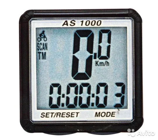 Велокомпьютер AS-1000, беспроводной, 8 функций, двухстрочный дисплей, чёрный, ВЛ-00004000