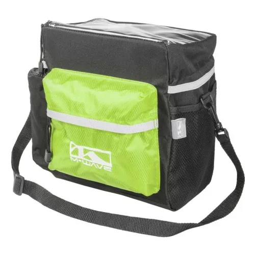 Сумка M-WAVE на руль быстросъемная, с плечевым ремнем, черный/зеленый