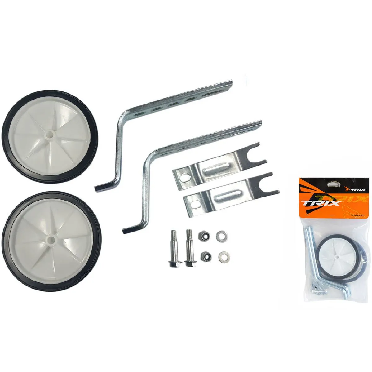 Колеса дополнительные TRIX с креплениями на детский велосипед стойки 12-20" пластик-резина, черн/бел, ВЛ-00035899