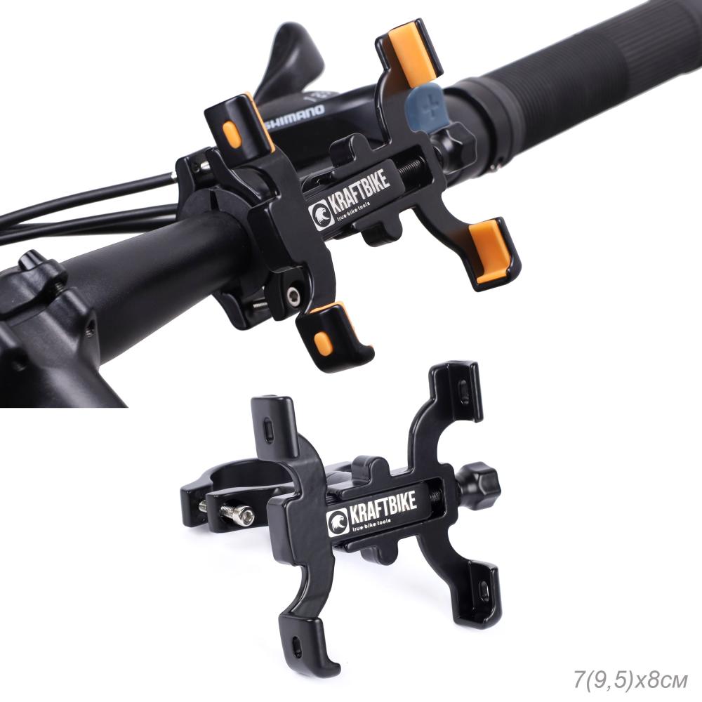 Держатель велосипедный для телефона KRAFTBIKE поворот 360", наклон 180" алюм, прорезин, черный, ВЛ-00036047